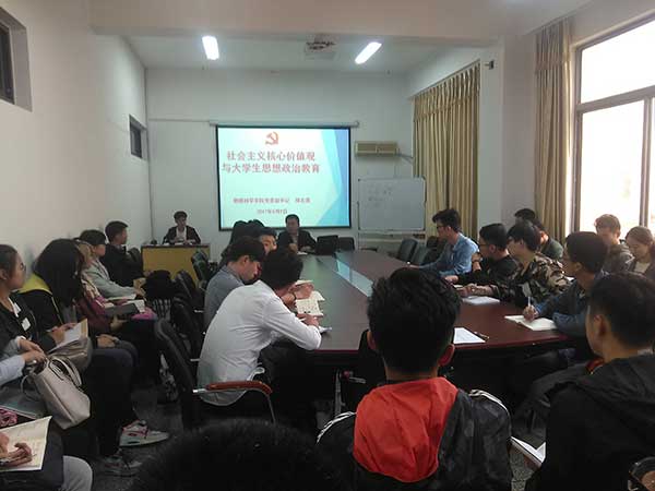 5月9日中午,tyc5997太阳集团2017年春季学期入党积极分子培训班第三讲开讲,院党委副书记周志强在博逸楼401会议室为全体入党积极分子作了题为《社会主义核心价值观与大学生思想政治教育》的主题报告。