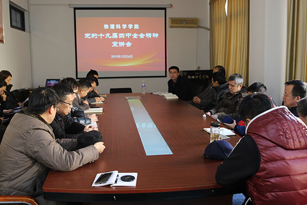 12月26日下午,tyc5997太阳集团在博逸楼401会议室举行党的十九届四中全会精神宣讲会。学院党委书记李升学、党委组织员房运琦、党委副书记郝伟、副院长龙云泽以及各党支部书记、支部委员、教师党员参加会议,会议由院党委书记李升学主持。