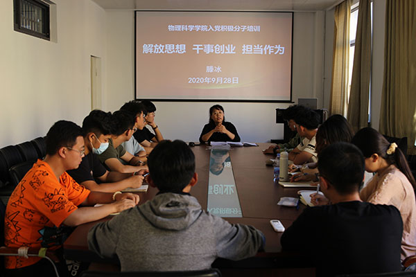 滕冰为入党积极分子作了题为《解放思想 干事创业 担当作为》的报告。她指出,解放思想非常重要,大学生要在学术上有所创新离不开解放思想,大家一定要保持与时俱进,时刻掌握科技前沿信息。她还结合学院人才培养等工作讲解了高质量发展的重要性,强调学院会多措并举不断提升人才培养质量,让同学们学有所成。她鼓励大家要积极向党组织靠拢,争做模范和先锋,争做德才兼备、有担当有所为的大学生。