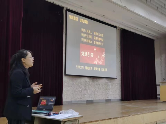 11月24日下午,学院在金家岭校区图文中心4楼报告厅举办“学习贯彻党的二十大精神暨青年人才成长学术报告会”。院长滕冰出席会议并作党的二十大精神宣讲,学院2022级辅导员和班主任、全体2022级本科生和研究生分别以线上和线下相结合的形式参加报告会。