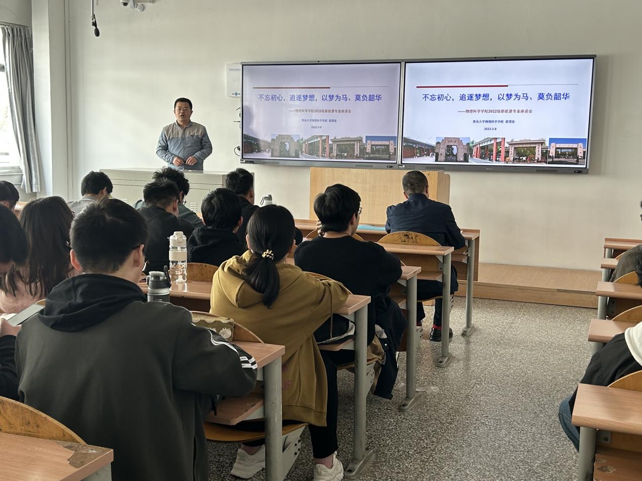 党委委员邵渭泉以《不忘初心,追逐梦想,以梦为马、莫负韶华》为题,从制定学业发展规划为切入点,从新能源专业特点、创新实践、发展目标、考研知识等方面为学生进行了详细解读,帮助同学们进一步加强了专业认知,鼓励同学们成为创新型人才。