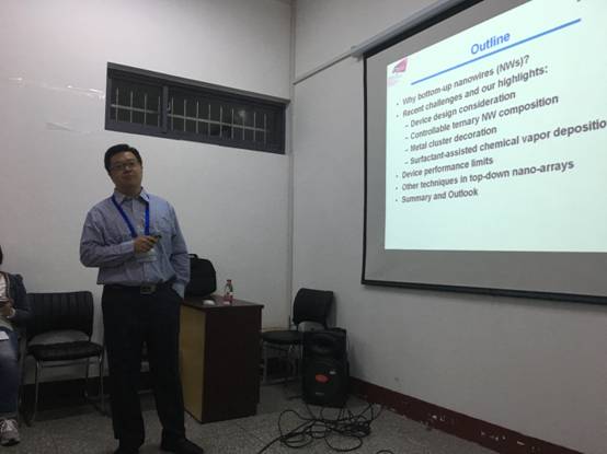 10月21日下午,香港城市大学物理与材料科学系副教授何颂贤博士应邀在博逸楼401会议室为学院师生做了题为《Design of Semiconductor Nanowires for Electronics, Sensors and Energy Harvestings (一维半导体纳米线的合成、表征及应用)》的学术报告,报告会由王凤云老师主持。
