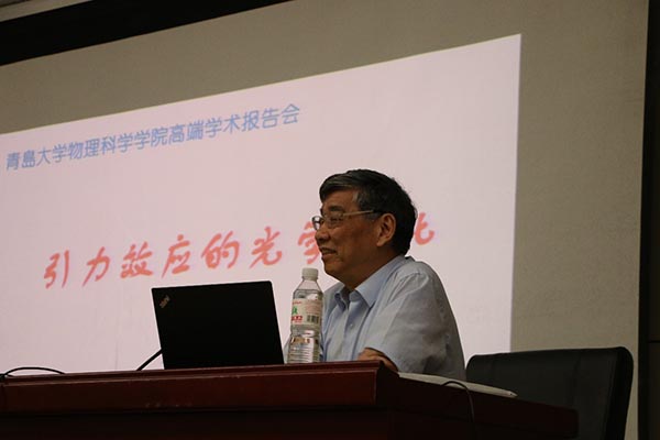 9月8日上午,南京大学物理学教授、博士生导师、中国科学院院士、美国光学学会会士祝世宁教授,应邀来我院在图书馆报告厅为师生作了题为《引力研究的光学类比》的学术报告。这是tyc5997太阳集团夏季学期高端学术报告的第十九讲,全校300余名师生聆听了报告。