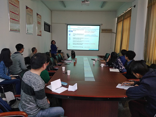 曹莉华在报告中首先介绍了强激光的特性和主要应用,随后介绍了自己课题组在开口锥靶对强激光的聚焦、强激光在空心毛细管中的传播、强激光与纳米刷靶相互作用产生准直电子束和Ka射线方面的有关理论计算的创新性工作。她还针对文章投稿过程可能遇到的问题与同学们分享了自己的经验。