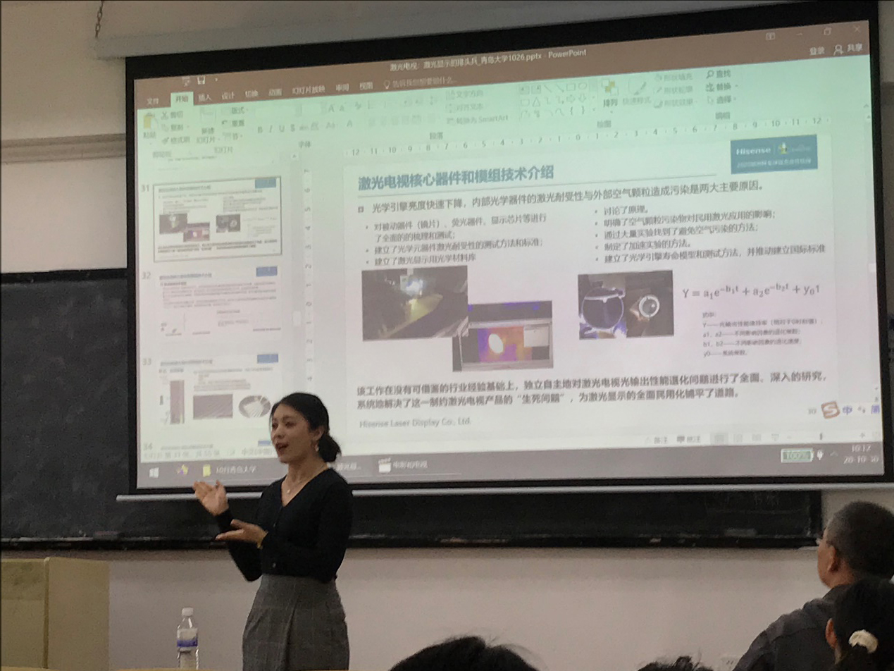 习近平总书记在党的十九大报告中明确提出,“深化科技体制改革,建立以企业为主体、市场为导向、产学研深度融合的技术创新体系,加强对中小企业创新的支持,促进科技成果转化”。刘显荣的报告以市场从业者的视角全方位深入解读了激光电视技术从实验室走向市场应用的过程,研发过程中其团队表现出的敢为人先、攻坚克难的精神给大家留下了深刻印象,也引发了大家对于科学技术和生产实际如何有机结合的思考,在接下来的科研工作中也将更加重视科研成果的转化和实际应用。