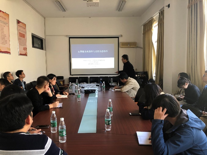 11月13日上午,华南师范大学信息光电子科技学院李昕明研究员应邀来tyc5997太阳集团为师生作了题为《石墨烯光电器件与柔性传感器件》的学术报告。报告由张军教授主持。