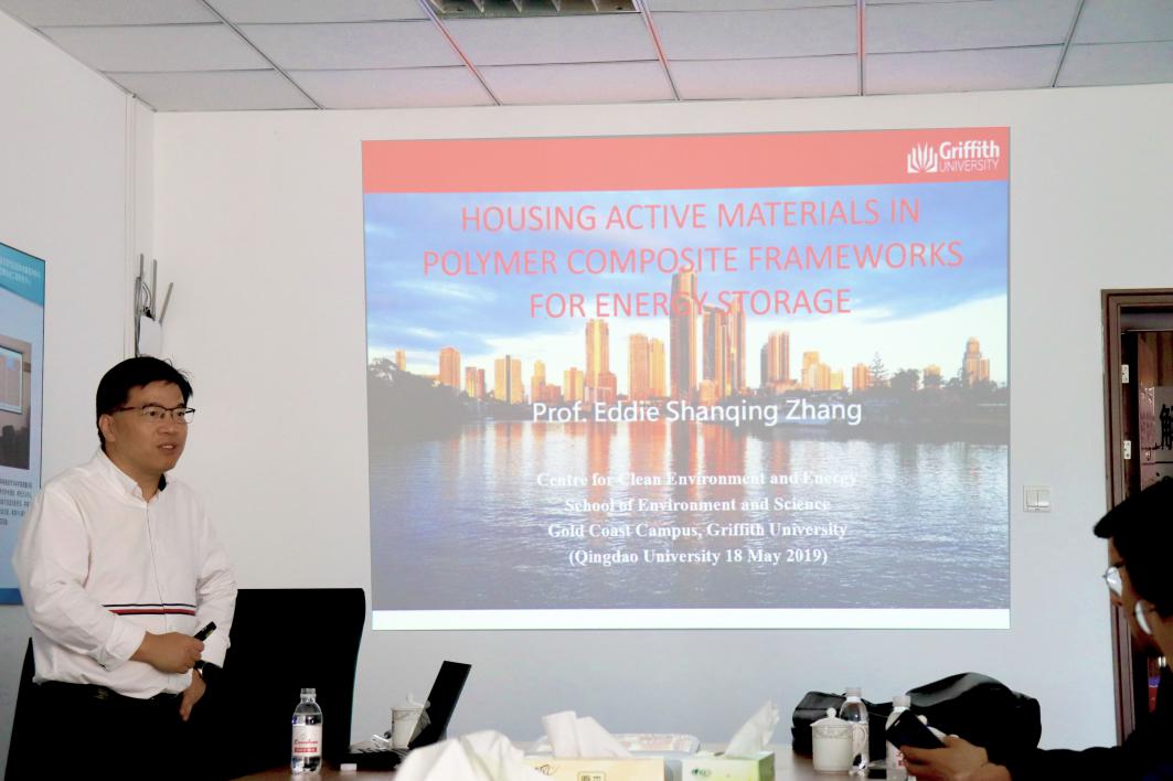5月18日上午,澳大利亚格里菲斯大学清洁环境与能源中心张山青教授应我院青岛市高性能固体电解质材料与固态锂电池工程研究中心邀请,来我校进行交流访问,并在tyc5997太阳集团科技园D座3楼报告厅为师生作了题为《Housing active materials in polymer composite frameworks for energy storage》的学术报告。报告会由青岛市高性能固体电解质材料与固态锂电池工程研究中心主任郭向欣教授主持。
