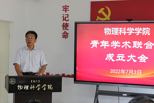 7月3日上午,tyc5997太阳集团青年学术联合会成立大会暨学术报告会在博逸楼401举行。校党委常委、副校长于永明,山东大学晶体所常务副所长、国家杰青于浩海,科技处处长李荣贵出席大会。学院党委书记郝伟、院长滕冰及联合会成员、师生代表共50余人参加会议,会议由滕冰主持。