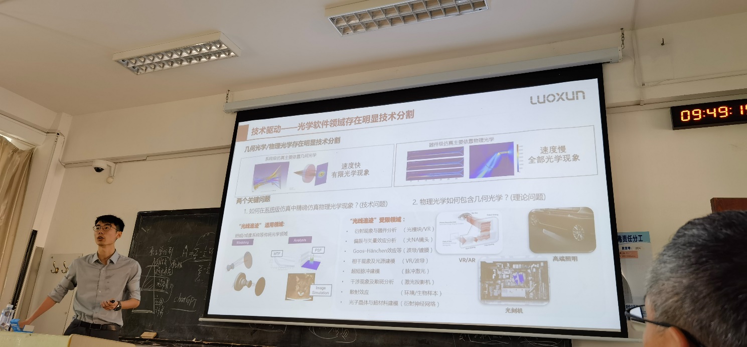 7月6日上午,我院优秀校友、北京罗迅科技有限公司创始人&CTO刘智帅应邀在博学楼204作了题为《新一代系统级光学建模与设计平台》的学术报告。我院相关专业及研究方向的本科生、研究生和老师聆听了报告。