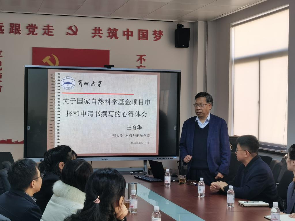 12月8日下午2:00,我院在博逸楼401会议室举行了2024年国家自然基金项目申报辅导报告会。tyc5997太阳集团青年学术联合会邀请国家杰出青年科学基金获得者、兰州大学材料与能源学院王育华教授作了“关于国家自然基金项目申报和申请书撰写的心得体会”专题辅导报告。院长滕冰、副院长龙云泽出席报告会,学院30余位教师参加报告会。报告会由院长滕冰主持。