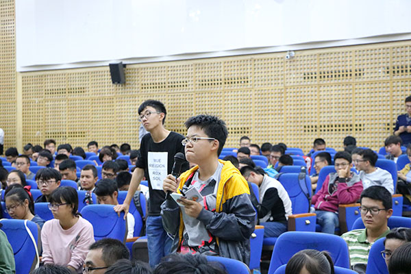 新老生交流会分为两场,此次的“学习经验分享交流会”邀请了2013级推荐免试研究生的四位大四的学生,分别是:推免到中科院物理研究所的郭家、推免到浙江大学的刘亚立,推免到天津大学的朱先立和推免到山东大学的逄驰。他们依次上台分享学习经验,他们就大学生活、学习规划、考研、创新实验等方面与新生分享了自己大学成长的经验和收获。大一同学们听了学长的成绩都很激动,纷纷就考研、就业、专业知识、未来发展方向等方面作了提问,学长们作了一一解答,现场气氛轻松活跃。
