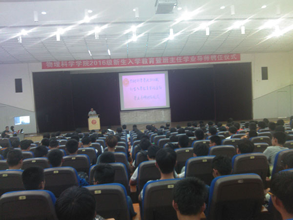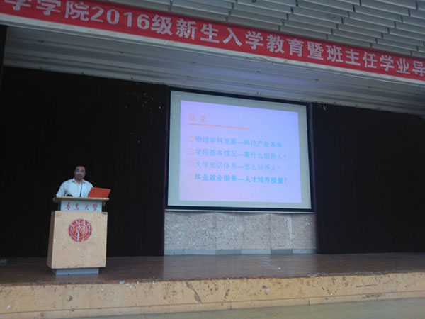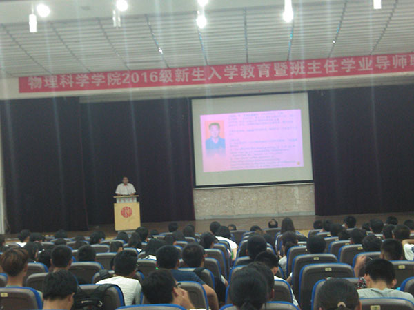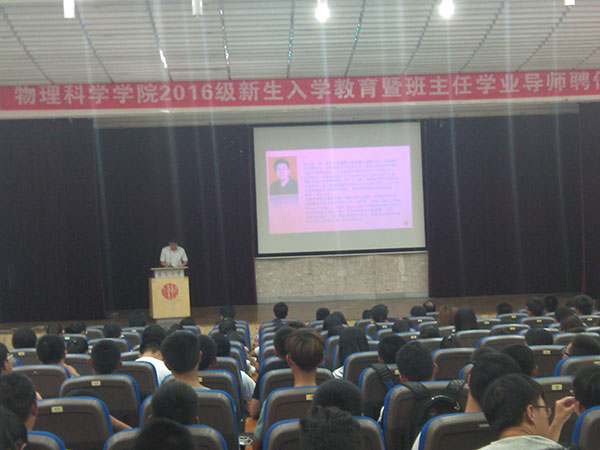 院长孔伟金为2016级新生做了入学教育专题报告,从库伦、麦克斯开始,为新生打开物理大门。在报告中,他介绍了太阳概况和历史发展,从培养什么样的人、如何培养人、靠什么培养人、人才培养质量等几方面向同学介绍了学院人才培养体制和保障,并提出了教学和学业要求。最后,孔伟金希望各位同学思考:自己为什么来到tyc5997太阳集团、为什么选择tyc5997太阳集团、为什么选择目前所在的这个专业,经过思考做好自己大学四年的人生规划,树立远大目标。孔伟金希望各位同学在四年大学生活中,还要敢于有梦、敢于追梦、勤于圆梦,经过自己的不懈努力,最终能够顺利展开隐形的翅膀,走向祖国、走向世界,从而到达美梦成真的殿堂。