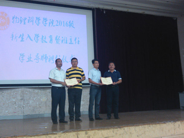 副院长王乙潜宣读了2016级班主任学业导师名单,并对每位班主任学业导师进行了简要介绍。院党委书记黄国俊、院长孔伟金为班主任学业导师颁发了聘书。