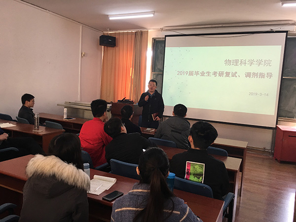 3月14日上午,我院召开了2019届毕业生考研复试调剂指导咨询会,邀请系主任、硕士生导师、班主任等针对同学们考研复试和调剂等支招助力,为大家答疑解惑。学院党委副书记郝伟主持会议,2019届近80名考研学生参加会议。
