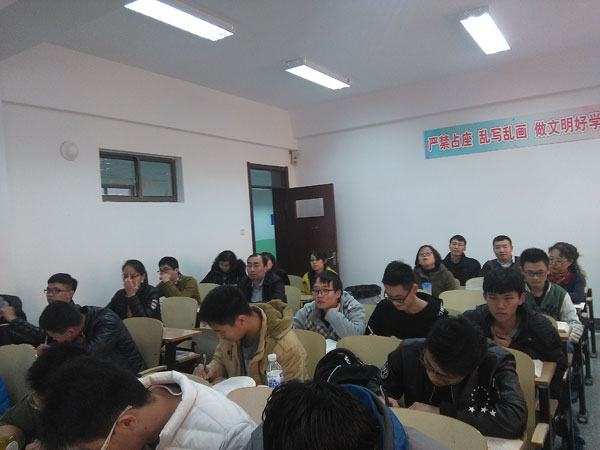 12月6日上午9:00,山东省教学名师陈沙鸥在博远楼306教室为师生上了学院第二堂观摩示范课——热力学统计物理,院长孔伟金、副院长滕冰及学院青年教师16人参加了观摩。