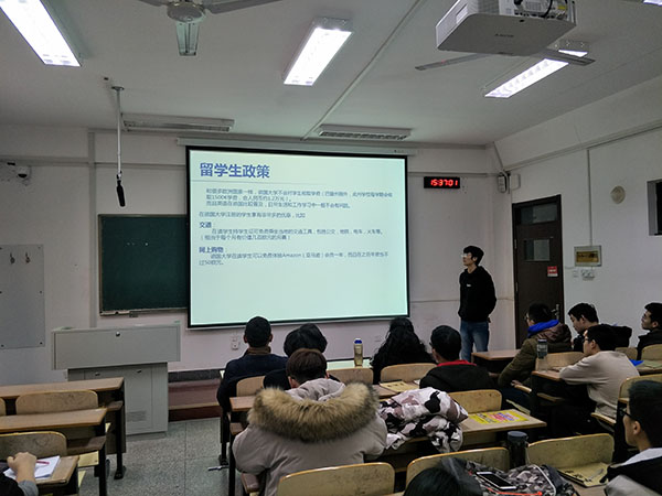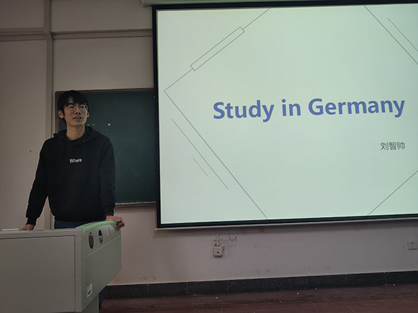 报告从“Why Germany?”“在德国的学习和生活”“留学流程”“留学问答等四个方面”详细介绍了德国科技发展概况、硕士课程设置、留学生活以及申请留学过程中语言的学习、大使馆APS审核准备、学校的筛选与申请等方面的技巧。刘智帅指出,德国科技的高度发达得益于德国成熟、优质的教育体系,为吸引更多人才,德国纳税人会为学生的学费买单,去德国留学是一个非常不错的选择。报告会后,刘智帅与参加报告会的同学进行了互动和交流。