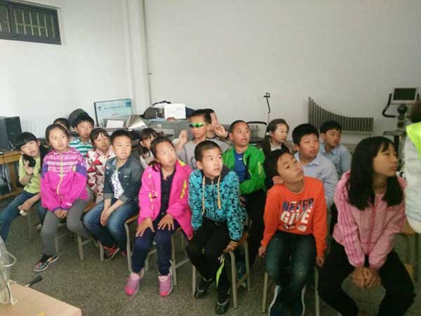 5月6日下午福林路小学、5月7日上午基隆路小学的十几位学生及家长一起来到我院博逸楼204教室一同参观了演示实验室,并操作了一些基本的物理实验。